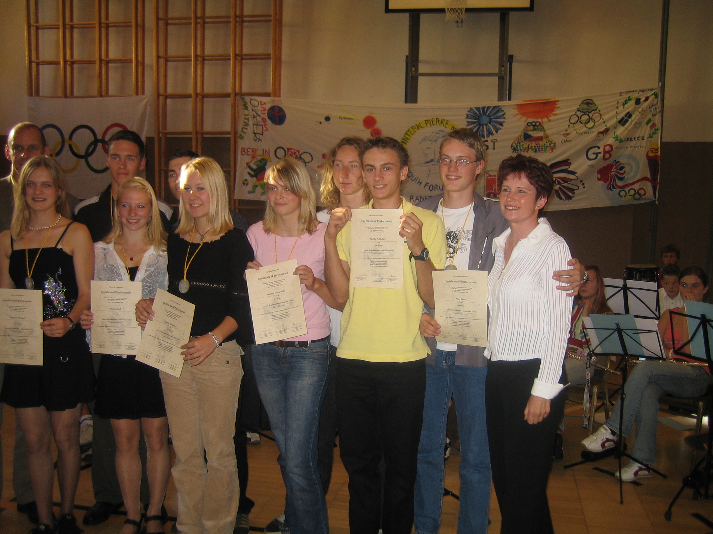 barten Sportanlage fanden Sportwettkämpfe statt, die durch die Präsentationen von art-performances aller Delegationen in der Sporthalle ergänzt wurden. Neben einer zu erbringenden sozialen Leistung waren das die Disziplinen, in denen um die Coubertin- Medaillen gerungen wurde. Die Mehrzahl aller Teil nehmer konnte diese Medaille erringen.